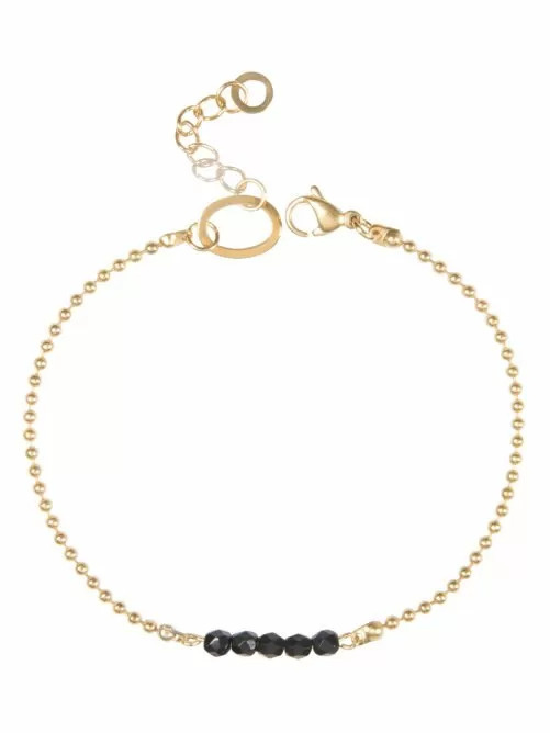 Fijn ball chain armbandje met 5 steentjes. Het armbandje is voorzien van een verlengkettinkje. Je kunt kiezen uit meerdere kleuren. Nikkelvrij.