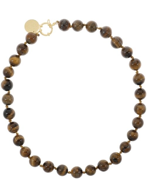 Prachtige gemstone ketting van Ellen Beekmans in bruin-mêlée met ronde gemstones van tijgeroog. Lengte van 18 inch (45 cm) valt mooi rond de halslijn. De ronde gemstones hebben een diameter van 1.2cm. Verguld op longlasting stainless steel.