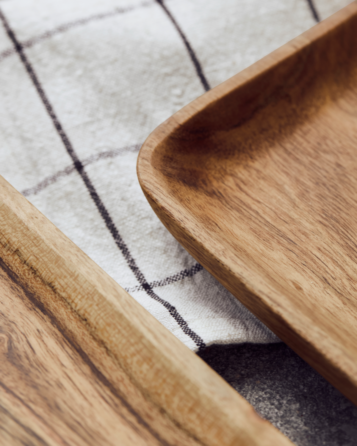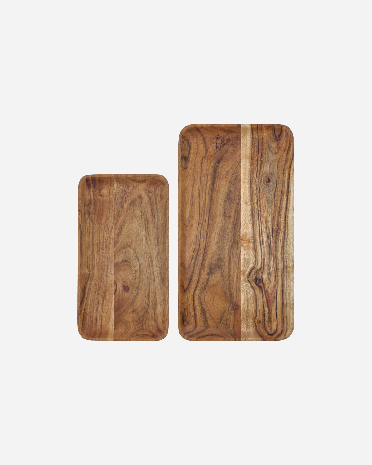 Met deze serveerschalen van House Doctor, gemaakt van 100% acaciahout , kun je je gerechten ideaal presenteren. Het hout is foodsafe dus serveer je hapjes direct van de tray of gebruik deze als dienblad. M: l: 33 cm, h: 2.5 cm, w: 18 cm large: L: 43 cm, h: 2.5 cm, w: 23 cm