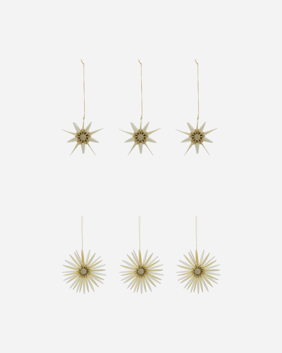 Deze papieren ornamenten zijn zó mooi! Hang ze in een tak, in je kerstboom of decoreer je tafel of een schaal ermee. In een set zitten 6 stuks in 2 dessins samen in een mooie cadeauverpakking. Ook leuk om cadeau te geven!