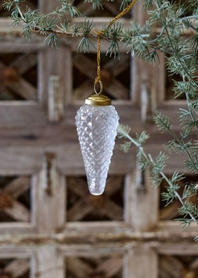 Mooie glazen kerstbal in de vorm van een dennenappel. Perfect voor in de kerstboom of aan een kersttak voor de ultieme kerst sfeer in huis. Ook leuk als cadeau! formaat: D 4 x H 9 x W 4