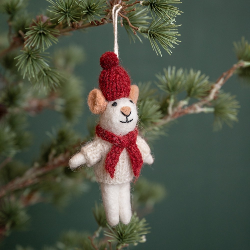 • Deze gezellige kerstmuis heeft een warme rode muts en sjaal en verdient een extra mooi plekje in je kerstboom! Afmeting: 10 cm