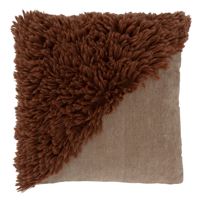 Zacht velours ontmoet lang haar in rijke tinten rood en taupe in dit comfortabele kussen van Urban Nature Culture. De gelaagde look geeft elke bank of bed een dimensie. Gevuld met gerecycled polyester voor comfort zonder schuldgevoel. 50 x 50 cm